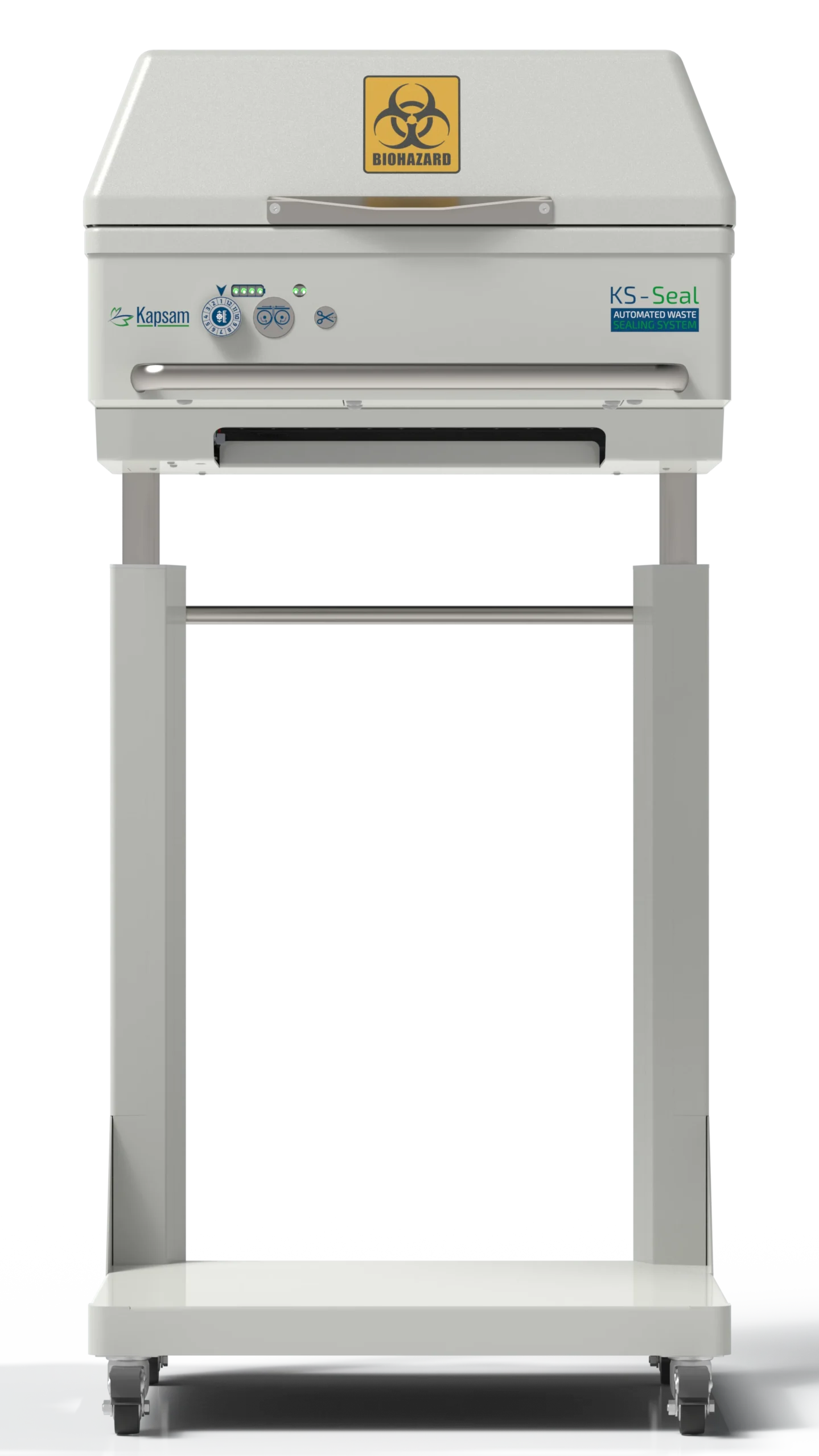 KS-Seal sistemi, Kapsam kabinleri ve PharmaScope Onco Bileşim Sistemi ile sorunsuz bir şekilde entegre olur, güvenli çalışma alanında pratik atık bertarafını sağlar. Kabin otomasyonuyla entegre olarak, folyo uzunluğunu izlemeye ve folyo kasetinin tükenmeden önce uyarı alarak kesintisiz operasyonlar için hazırlık yapmaya olanak tanır, böylece sorunsuz ve güvenli bir iş akışı sağlanır.