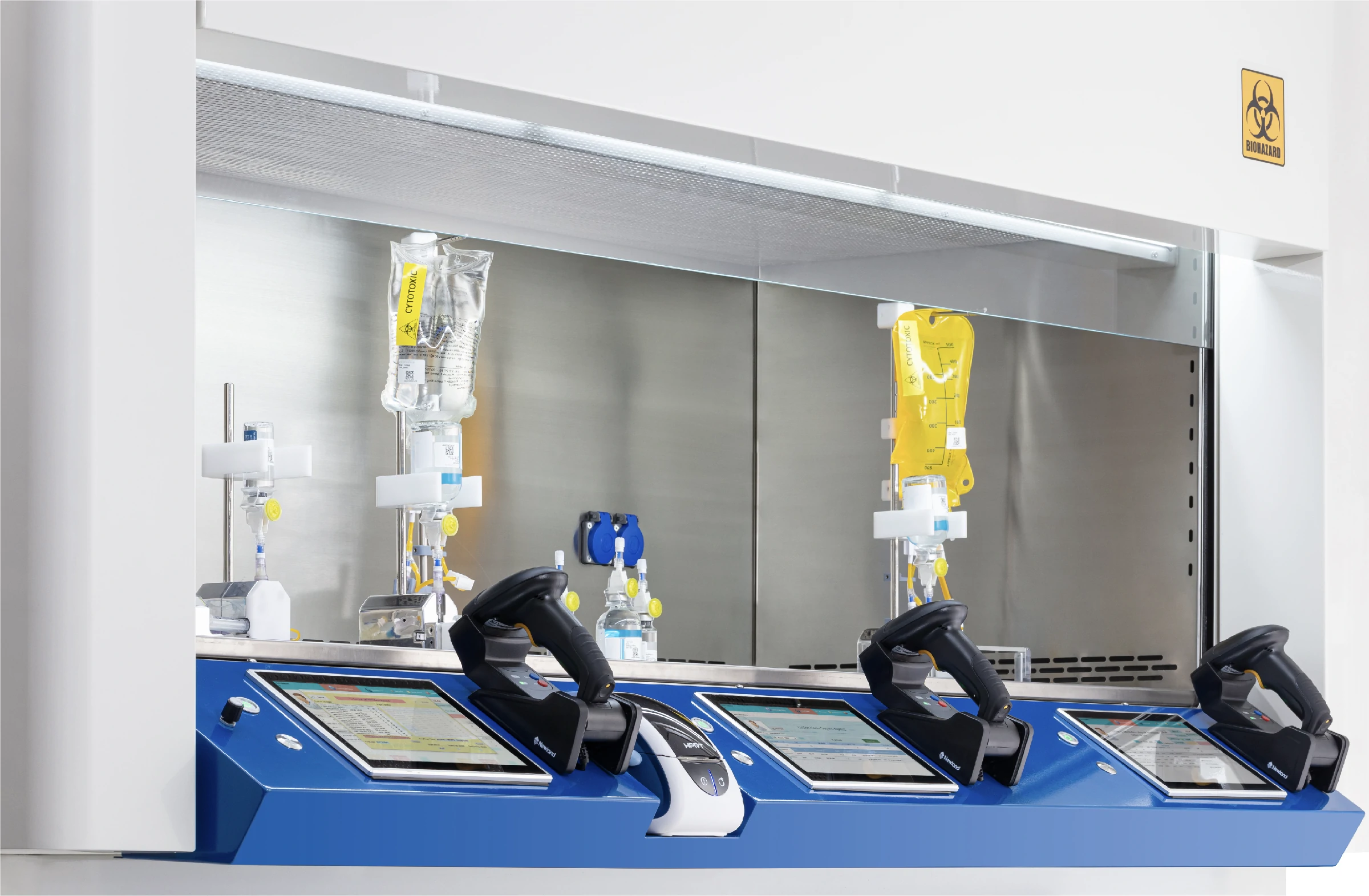 Her bir hasta dozu ve kullanıcı adımları dahil olmak üzere sipariş girişinden yatak sahasına kadar izlenebilir bir iş akışı sağlar. Her ilaç ve kap için benzersiz barkodlarla gelişmiş ilaç/konteyner envanter yönetimi sağlar